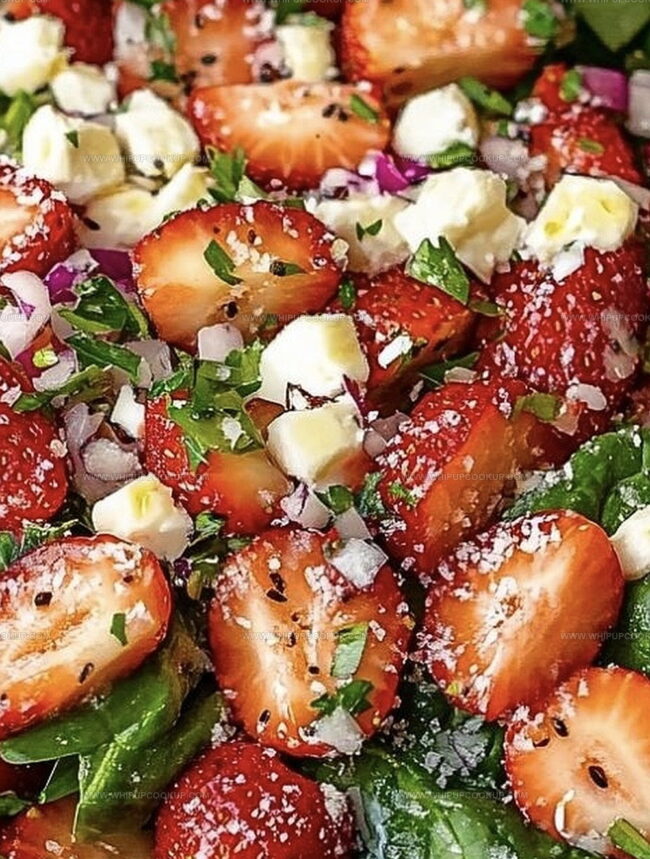 - Meticulously cleanse baby spinach and strawberries, ensuring they are completely dry. Delicately slice strawberries into elegant, thin pieces.