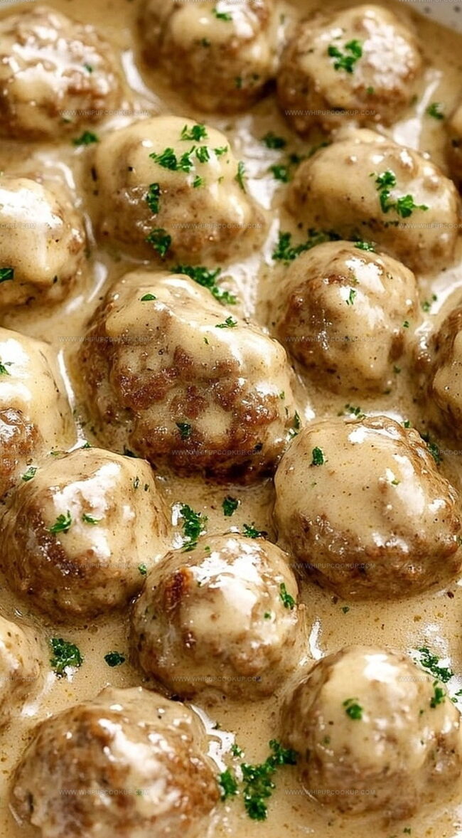 Tender, juicy morsels of seasoned ground meat dance with a rich, creamy sauce that whispers of tradition and home-cooked warmth.