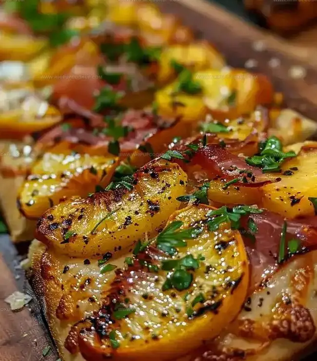Summer’s sizzling Sweet Grilled Peach and Prosciutto Flatbread blends Mediterranean charm with seasonal elegance. Crisp flatbread layers delicate prosciutto, caramelized peaches, and fresh herbs, promising a delightful culinary escape you’ll savor to the last bite.