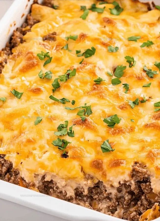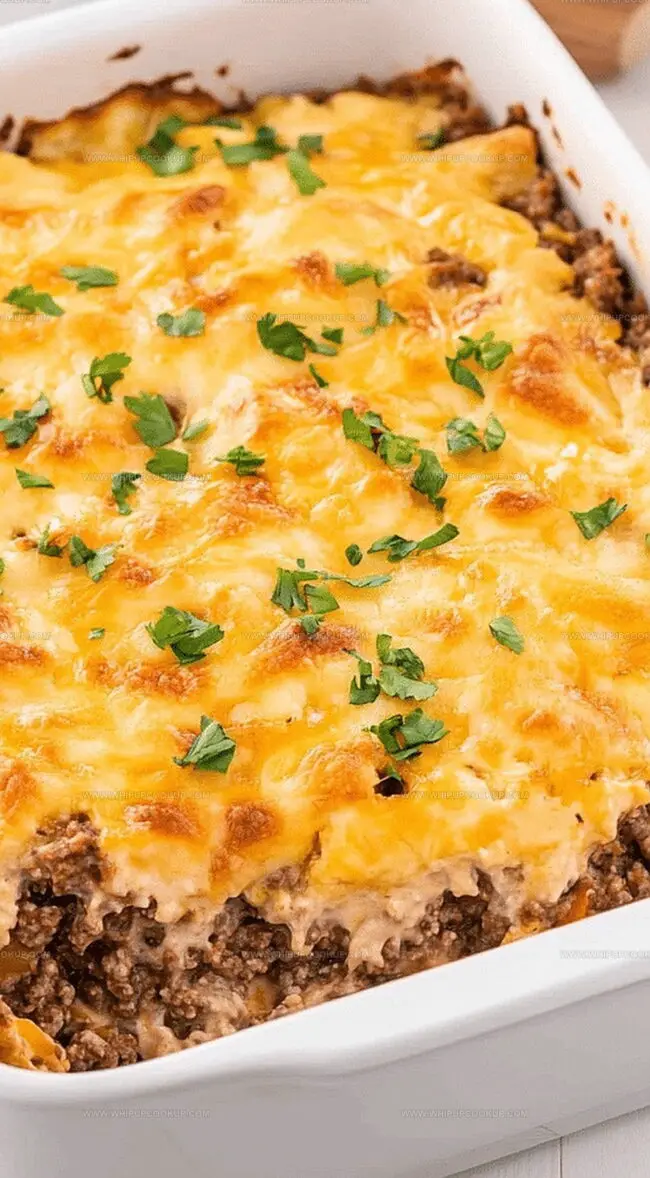 - Slice and serve warm, enjoying the hearty combination of seasoned beef, tender potatoes, and melted cheese.